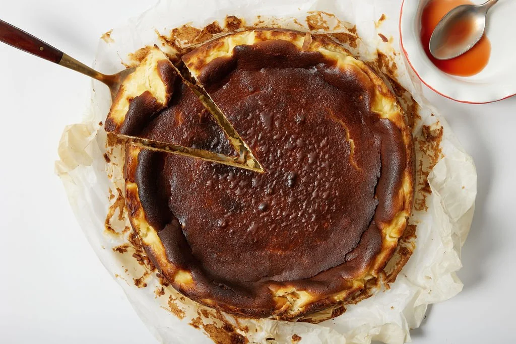 Basque Cheesecake with Cranberry Caramel
