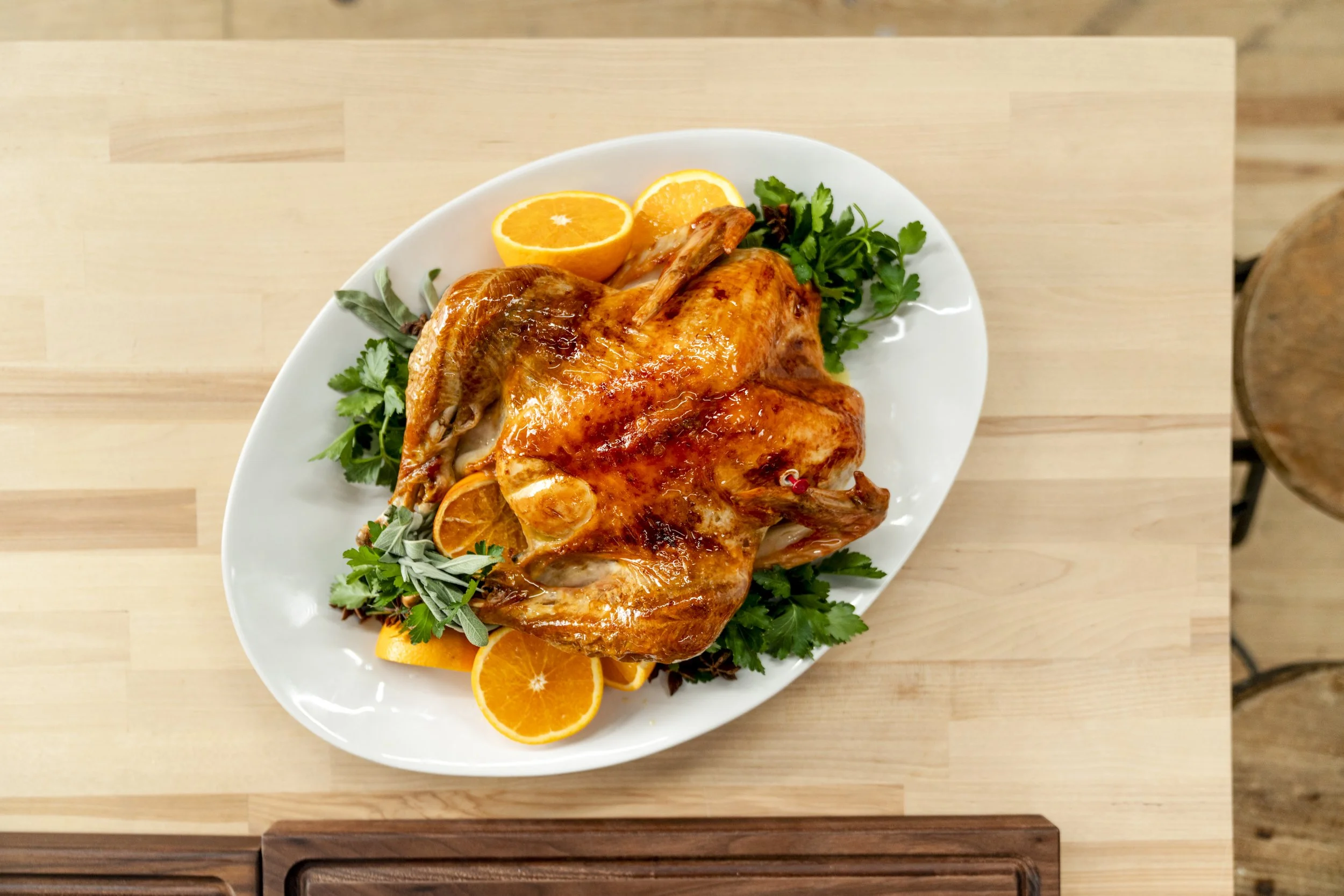 - Preheat and Prepare: Preheat oven to 325°F (165°C). Pat turkey dry, remove giblets, and set aside. Stuff cavity with oranges, star anise, and tarragon.