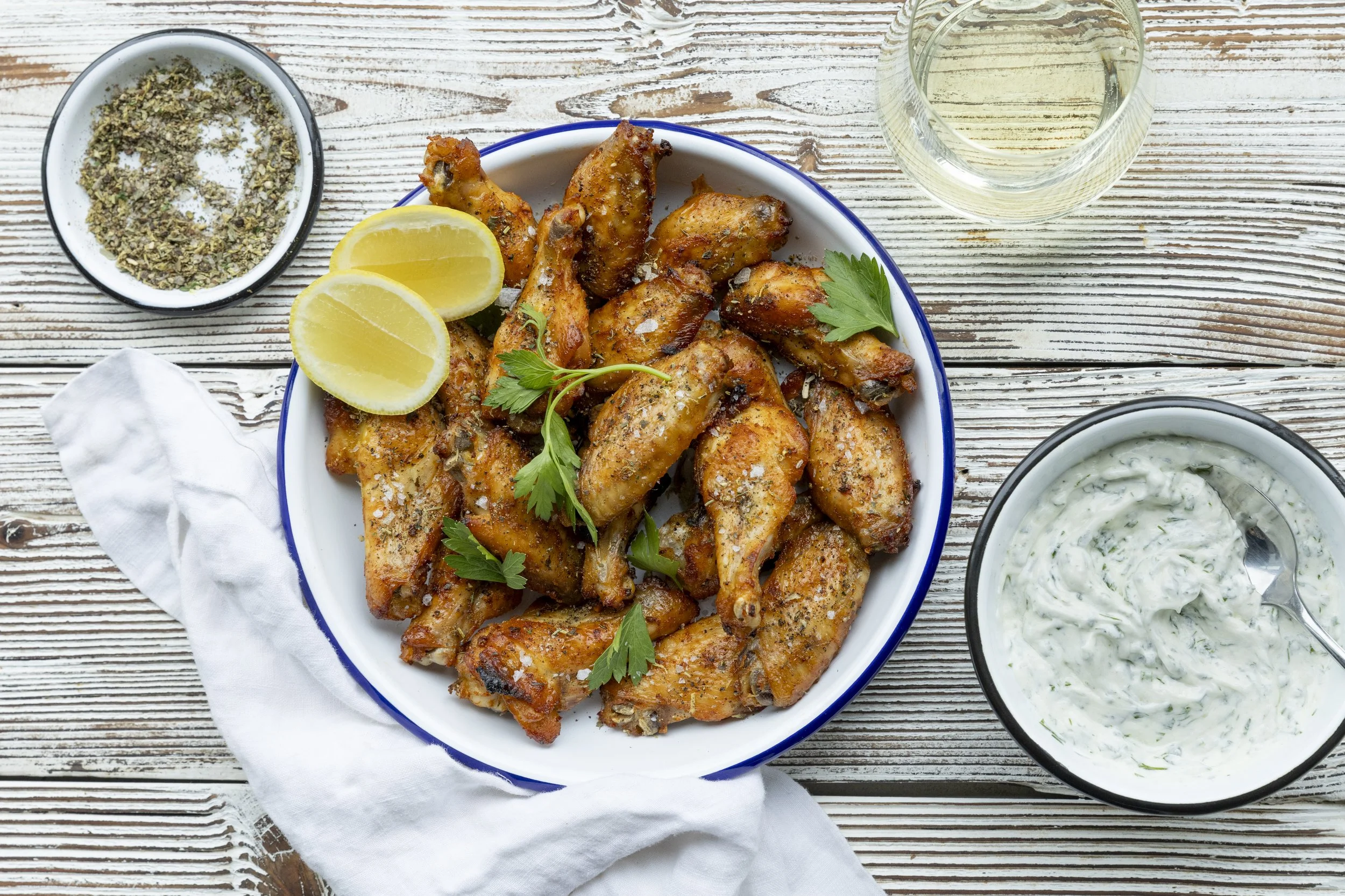 Lemon Pepper Wings with Goat Cheese Ranch