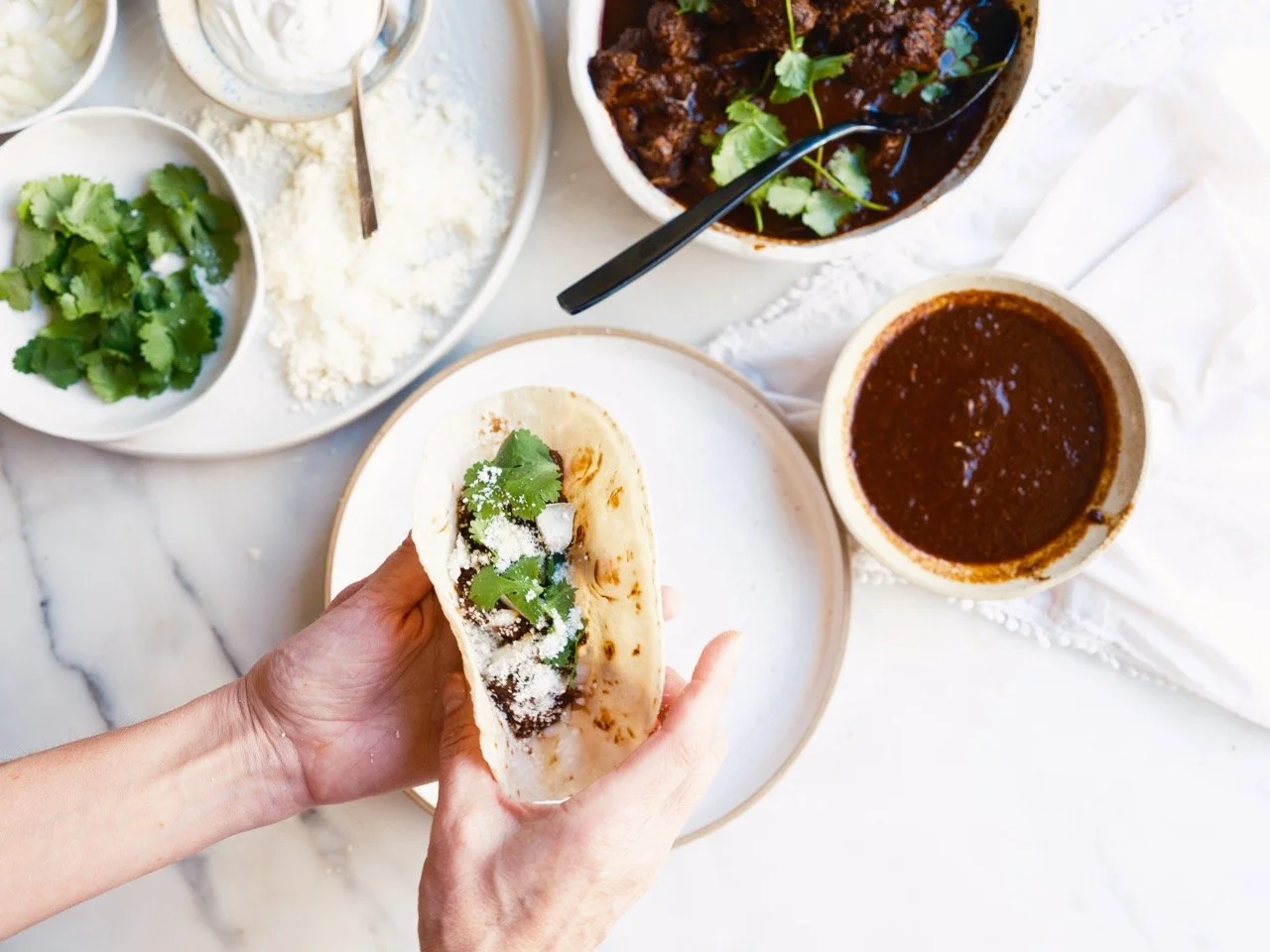 This rich, super flavorful braise is a variation of barbacoa, enhanced with freshly toasted spices and whole dried chiles.