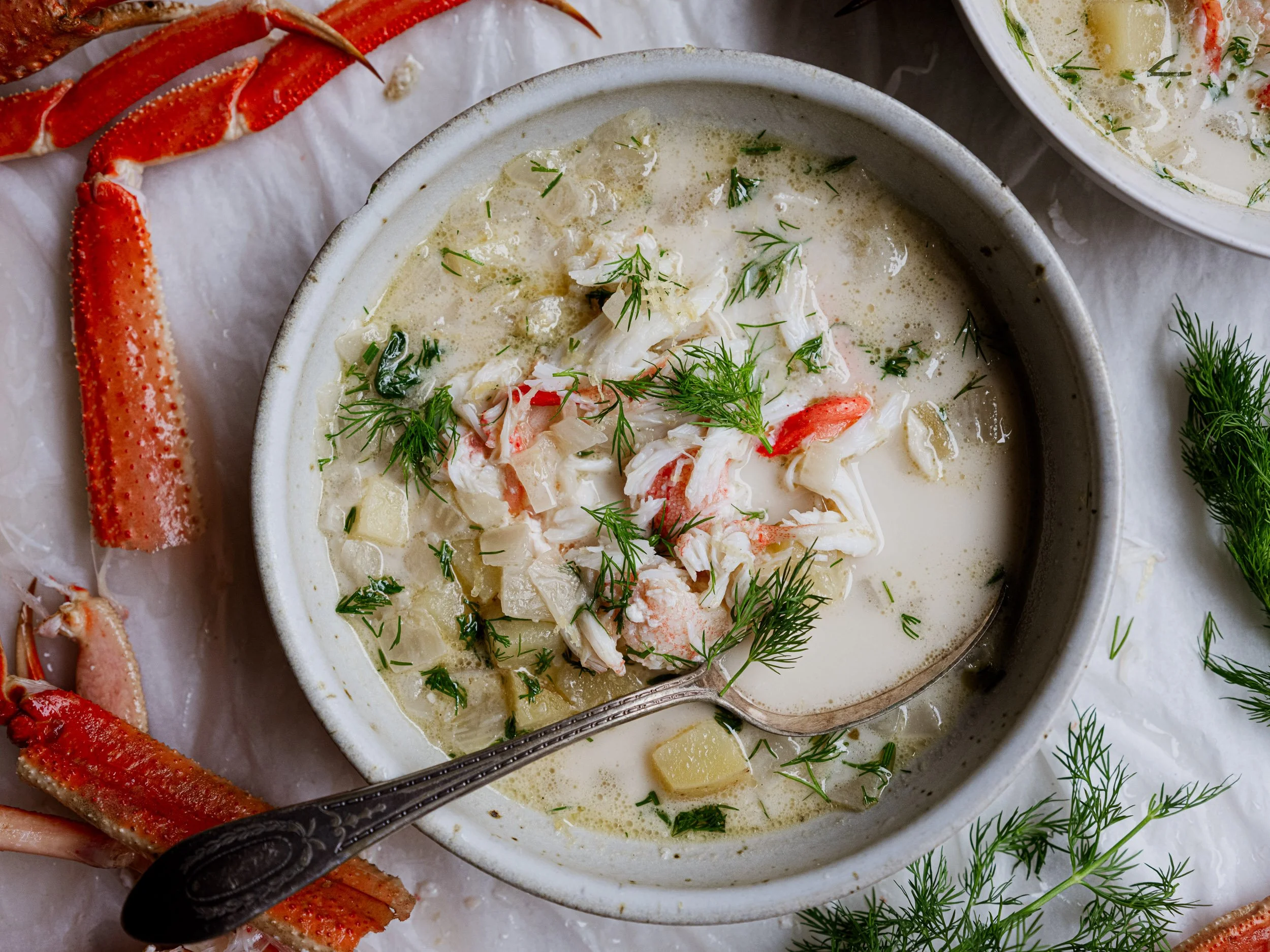 A bright, modern take on chowder that celebrates the delicate sweetness of Alaska Bairdi crab. A lighter base of milk and stock keeps it fresh, while tender potatoes and your choice of fennel or celery add gentle depth. Finished with a lift of lemon and fresh herbs, this chowder is equally at home as a cozy weeknight dinner or an elegant first course for a holiday meal.