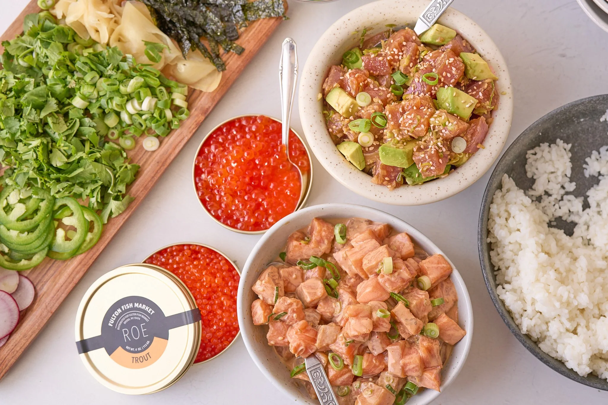 Bring a taste of the islands to your holiday table with this fresh, vibrant spread of marinated seafood, seasoned rice, and colorful toppings. Guests can build their own bowls with layers of flavor, from creamy and spicy to crisp and refreshing, for a meal thatβs both unique and fun to share.